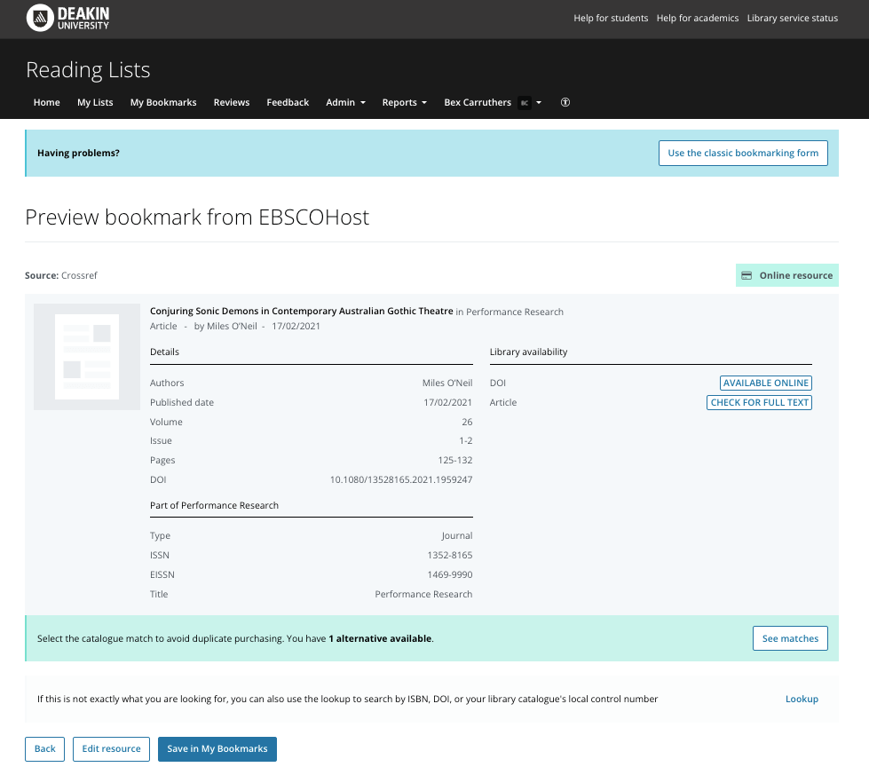 If you’d like early access to create bookmarks using the new interface, please email reading-lists@deakin.edu.au