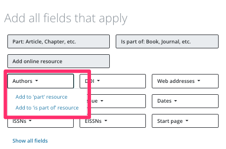 Add to 'is part of' resource – adds information to the larger work (e.g., book).